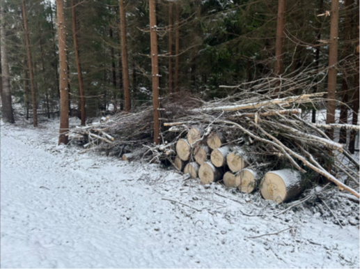 Som en ytterligare naturvårdande insats har vi tagit vara på avverkad ved för att skapa en så kallad faunadepå. En faunadepå är en samling av naturmaterial såsom grenar, stammar och rötter som läggs tillsammans i högar eller strukturer i naturen för att skapa skyddade miljöer för olika djurarter. När veden bryts ner över tid bidrar den dessutom till näring i marken och gynnar en rik biologisk mångfald.